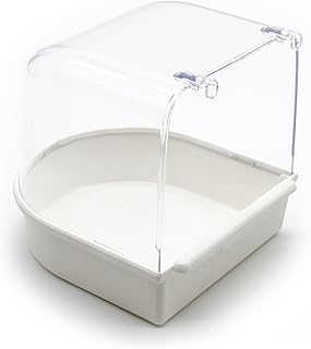 Ein weiterer Vorteil des Badehäuschens: Es verhindert, dass zu viel Wasser durch übermütiges Plantschen im Raum verteilt wird. Die meisten Modelle lassen sich einfach an der Käfigtür oder am Gitter befestigen und bei Bedarf wieder abnehmen.
