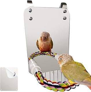 Vergiss nicht die klassischen Vogelspiegel – viele Vögel sind fasziniert von ihrem eigenen Spiegelbild. In bunten Rahmen werden sie zu einem dekorativen und unterhaltsamen Element der Käfiggestaltung.