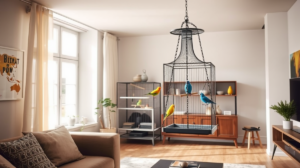 Unterschiedliche Höhenebenen: Vögel bevorzugen erhöhte Positionen. Nutzen Sie Regale, Schränke oder speziell montierte Plattformen, um verschiedene Ebenen zu schaffen. Die höchsten Punkte sollten mindestens auf Augenhöhe sein, idealerweise noch höher.