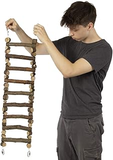 Kletterhilfen: Leitern aus Naturholz oder geflochtene Seile fördern die Geschicklichkeit der Vögel. Holzleitern in verschiedenen Ausführungen bieten zusätzliche Klettermöglichkeiten.