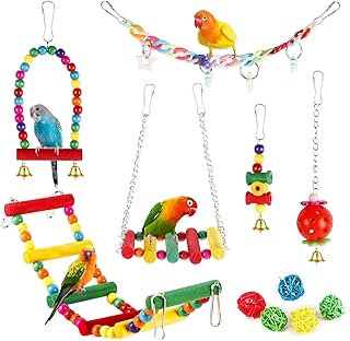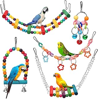 - Schaukeln mit Spielzeug-Elementen – kombiniert mit Perlen und Rasseln für neugierige Wellensittiche